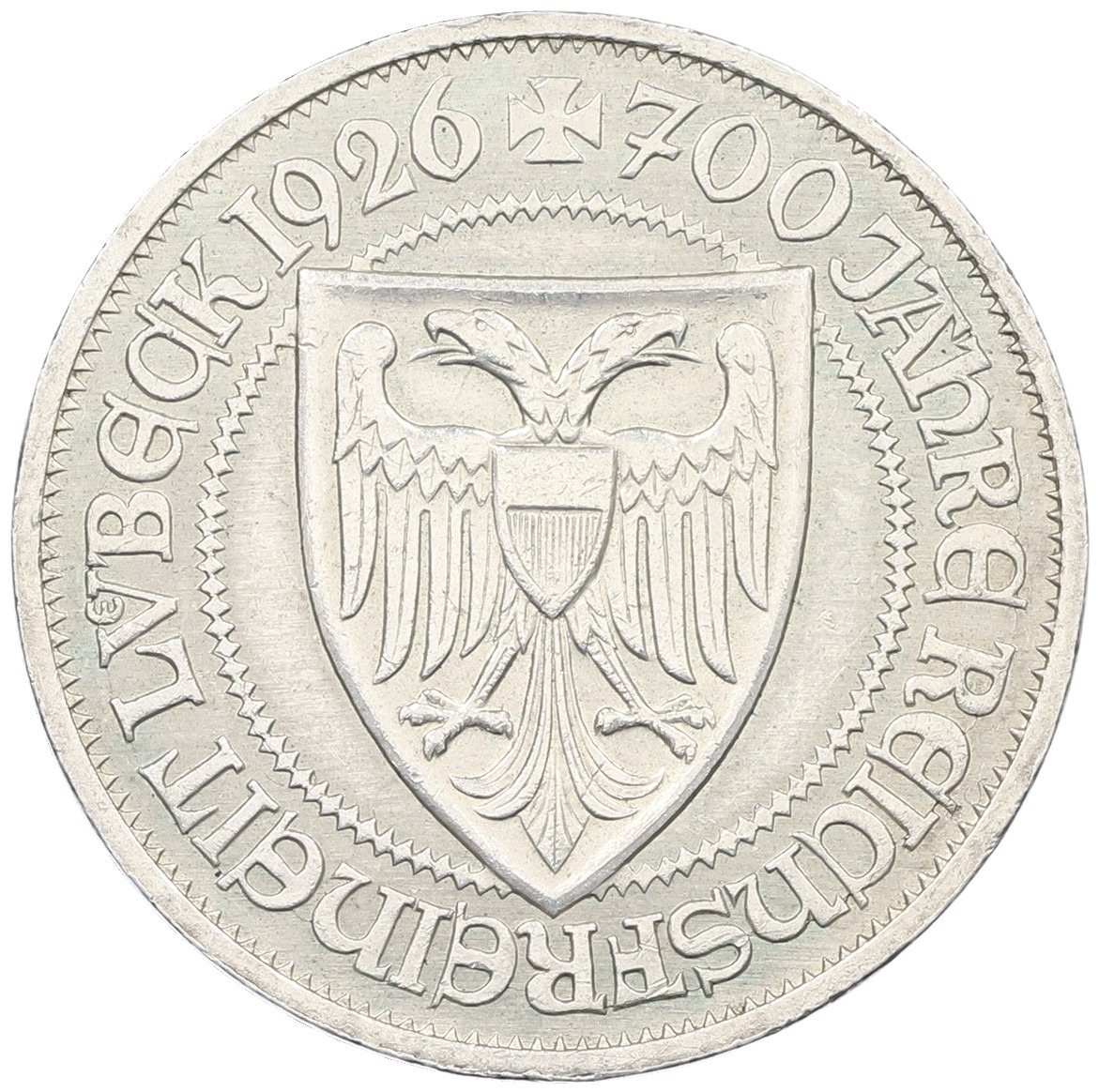 3 рейхсмарки 1926 года А Германия «700 лет статусу свободного города Любека»