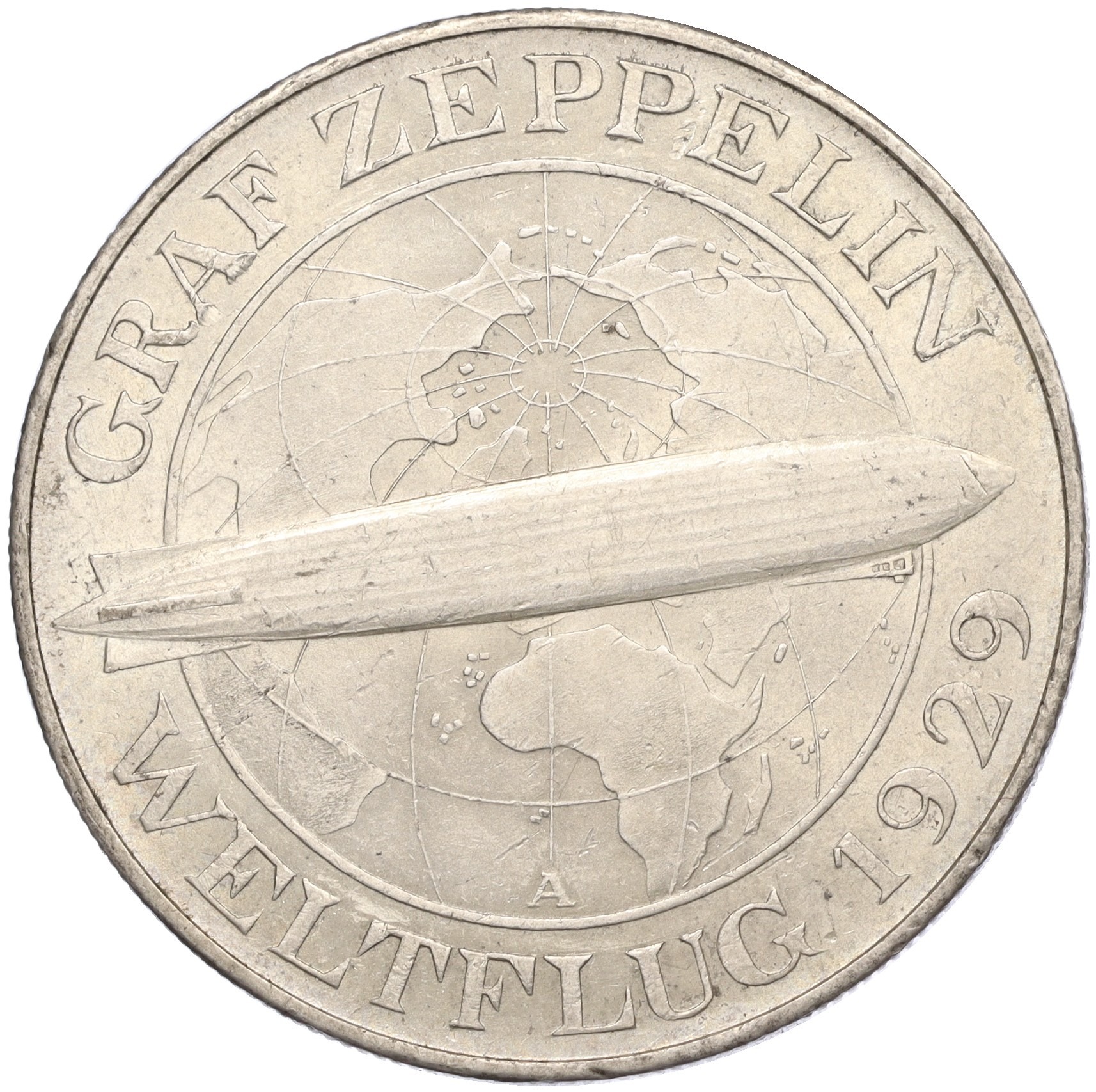 5 рейхсмарок 1930 года А Германия «Полет дирижабля Граф Цеппелин»