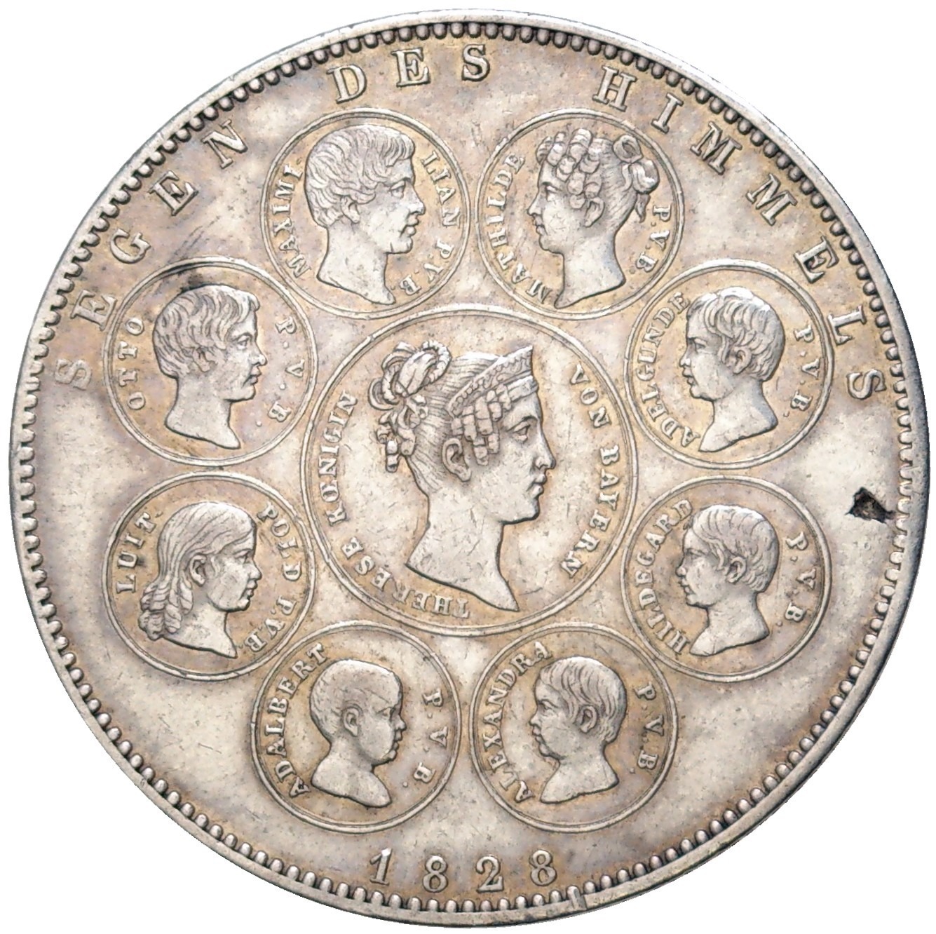 1 талер 1828 года Бавария «Благословения Небес королевской семье»