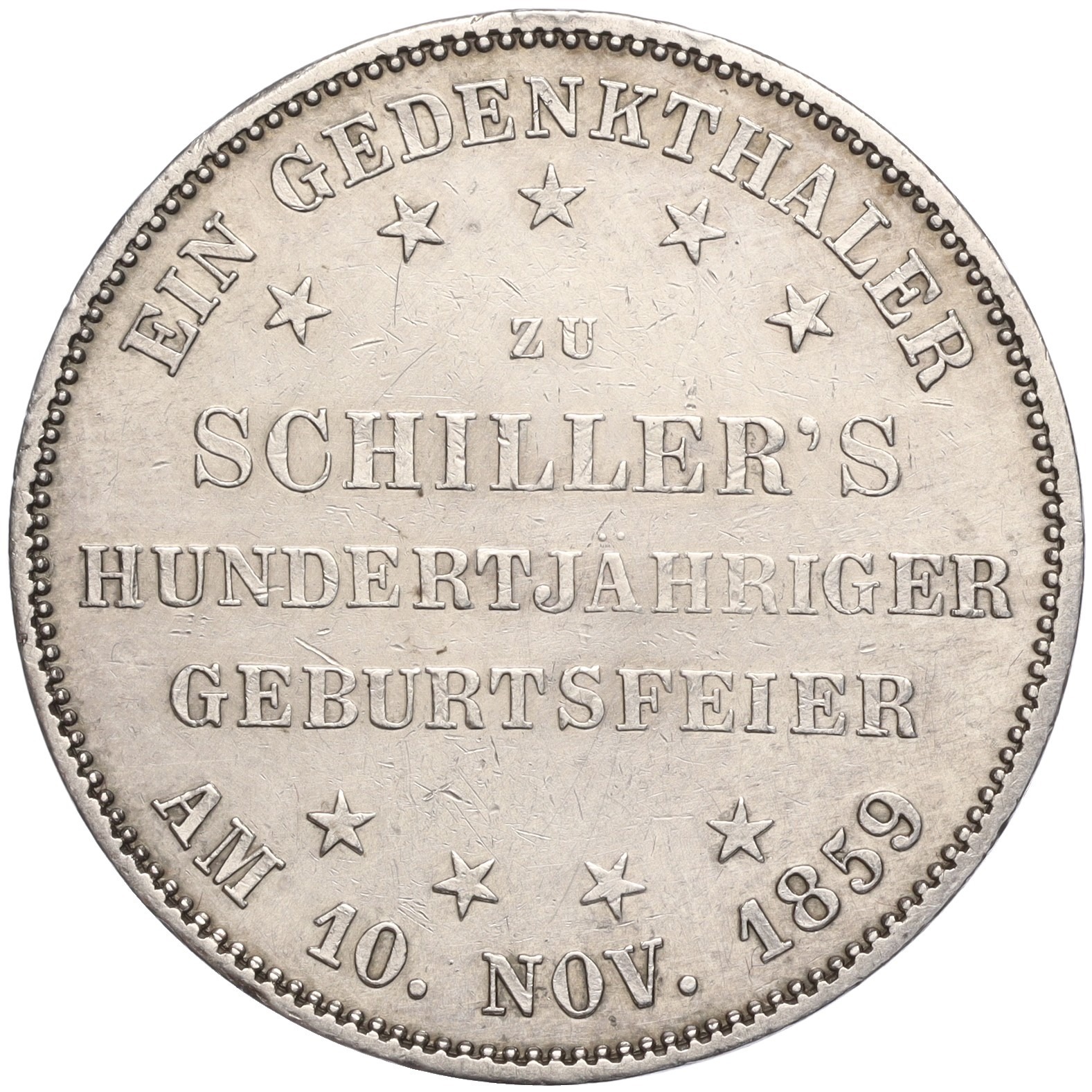 1 талер 1859 года Франкфурт «100 лет со дня рождения Фридриха Шиллера»
