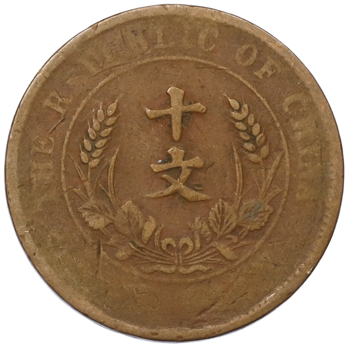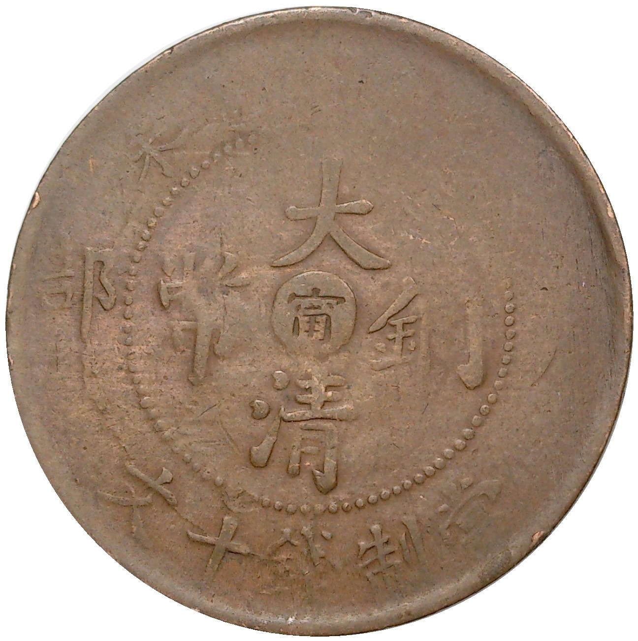 10 кэш 1907 года Китай — отметка монетного двора «Цзяннань»