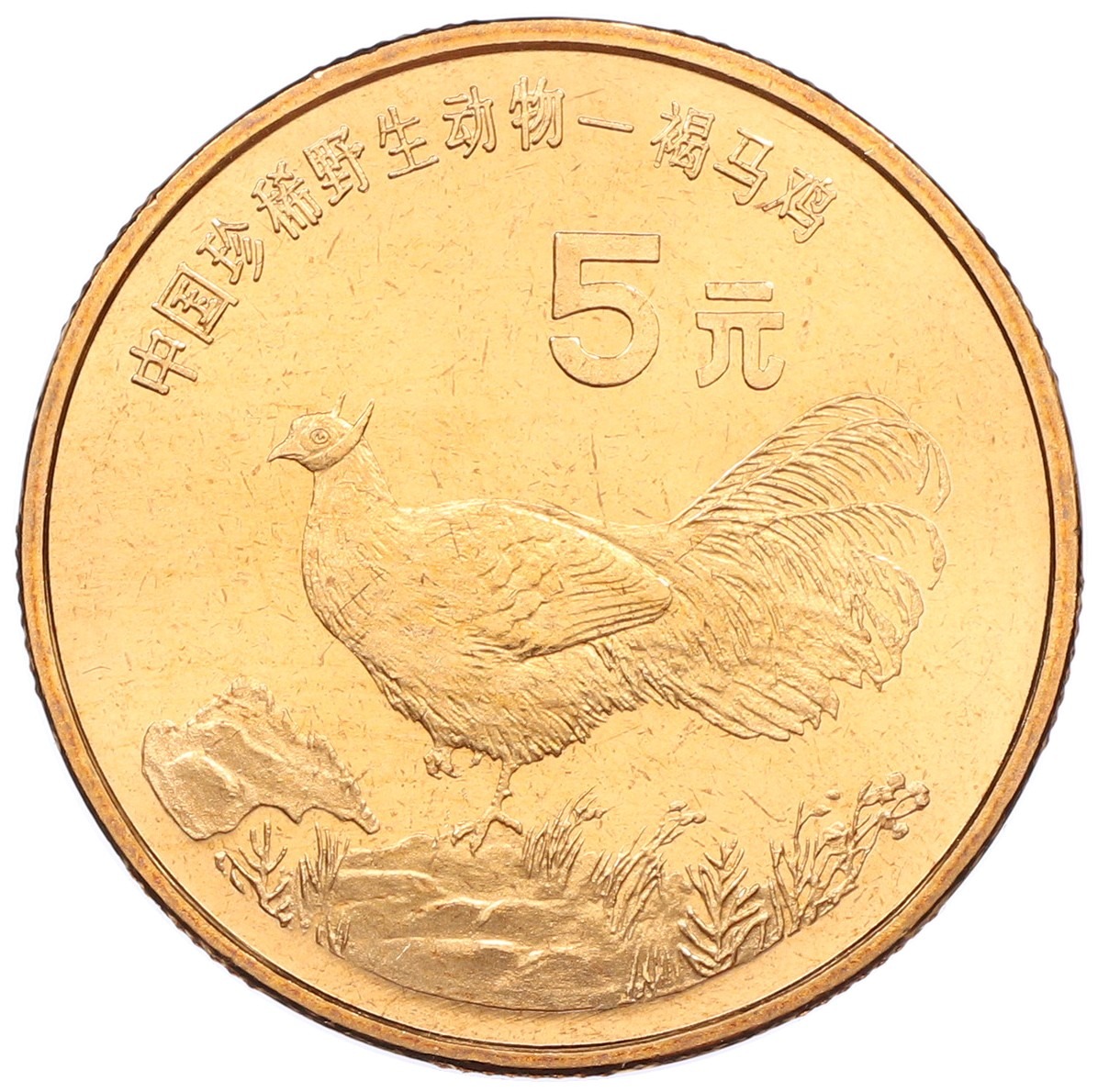 5 юаней 1998 года Китай «Красная книга — Ушастый коричневый фазан»
