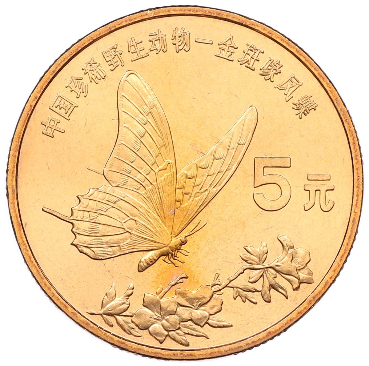 5 юаней 1999 года Китай «Красная книга — Бабочка-парусник»