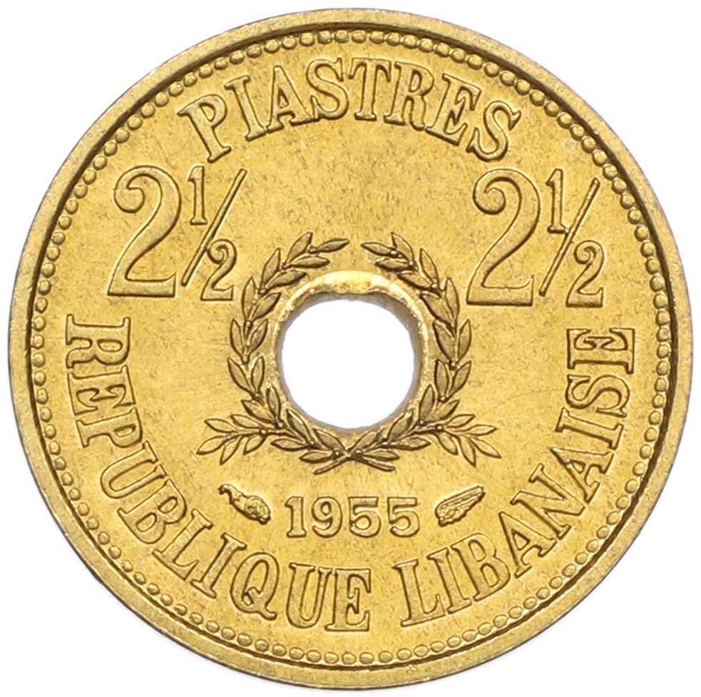 2 1/2 пиастра 1955 года Ливан
