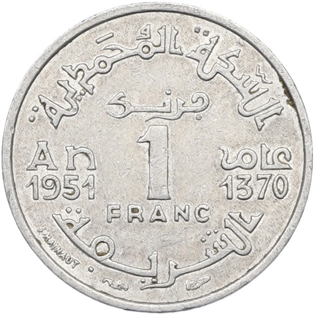 1 франк 1951 года (AH 1370) Марокко (Французский протекторат)