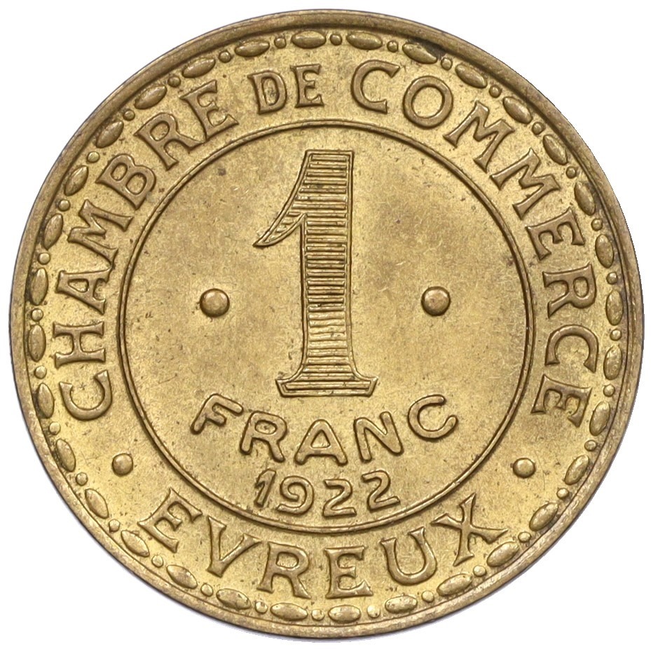 1 франк 1922 года Франция — город Эвре (Нотгельд)