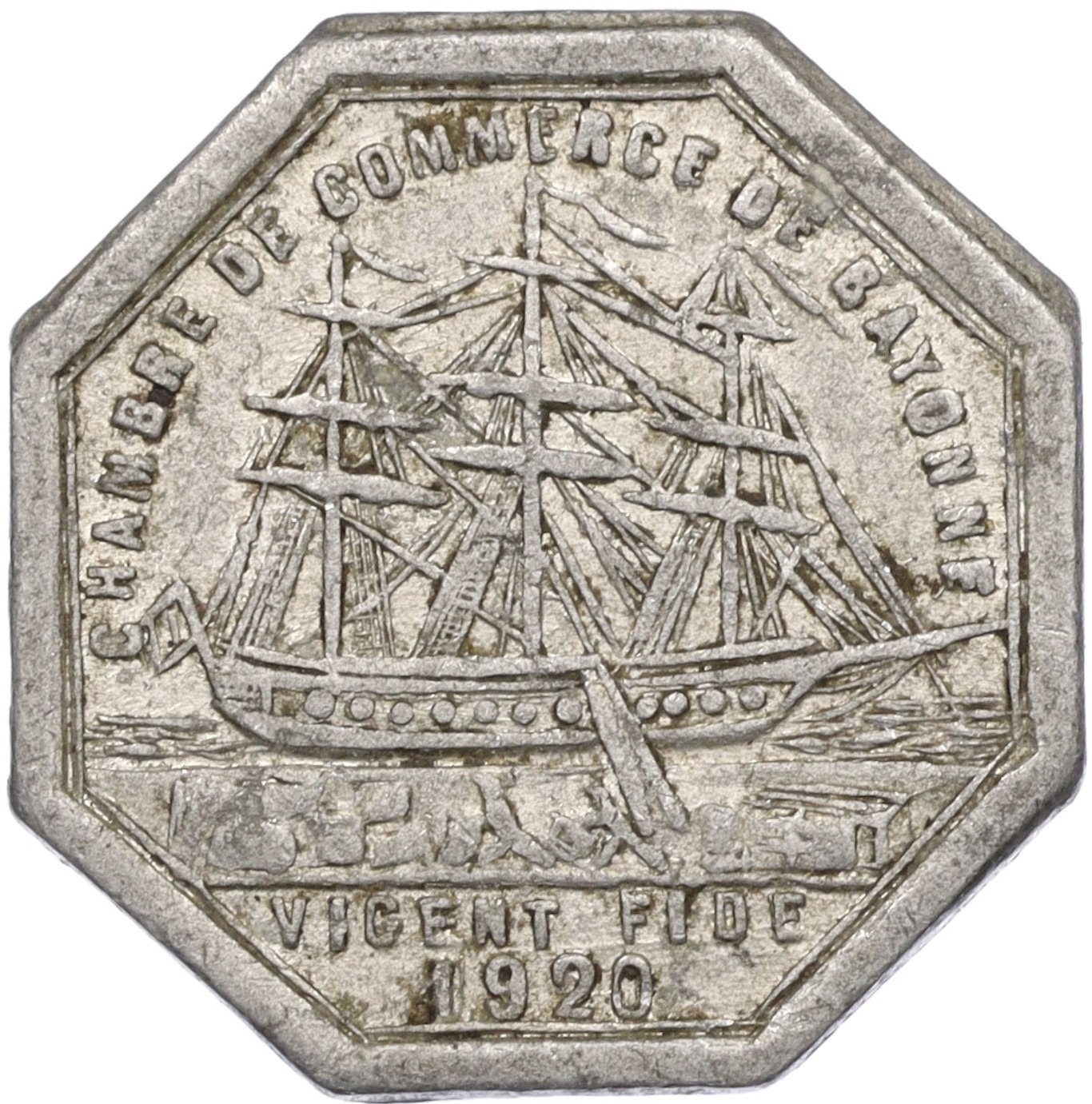 10 сантимов 1920 года Франция — Нотгельд (Торговая палата Байонна)