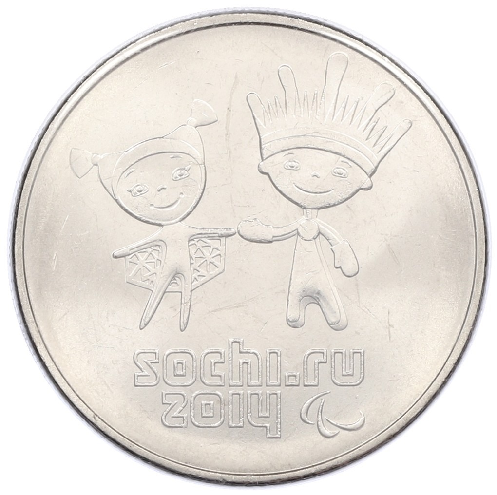 25 рублей 2014 года СПМД «XXII зимние Олимпийские Игры 2014 в Сочи — Талисманы Паралимпиады» (в блистере)