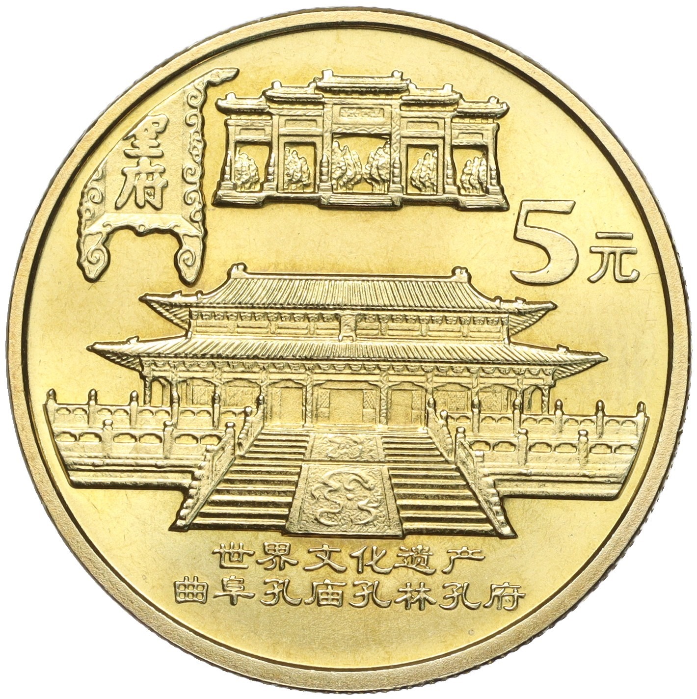 5 юаней 2003 года Китай «Достопримечательности Китая — Храм Конфуция в Цюйфу»