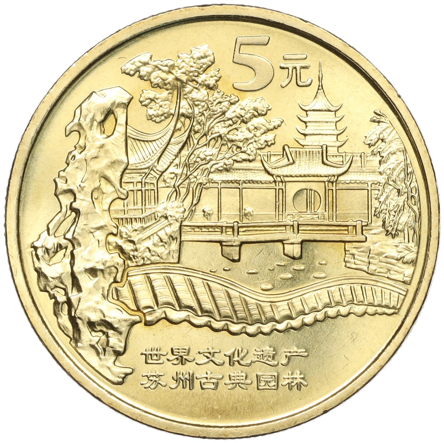 5 юаней 2004 года Китай «Всемирное наследие ЮНЕСКО — Парки Сучжоу»