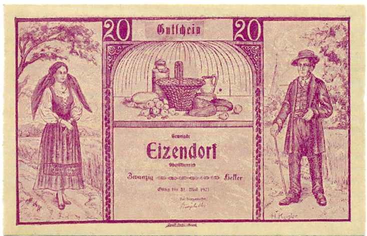 20 геллеров 1920 года Австрия — Коммуна Айзендорф (Нотгельд)