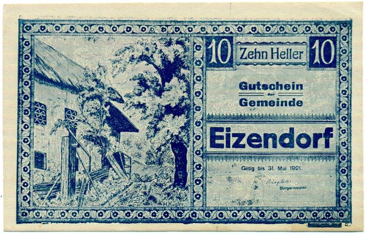 10 геллеров 1920 года Австрия — Коммуна Айзендорф (Нотгельд)