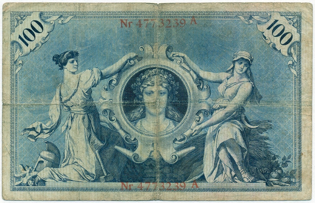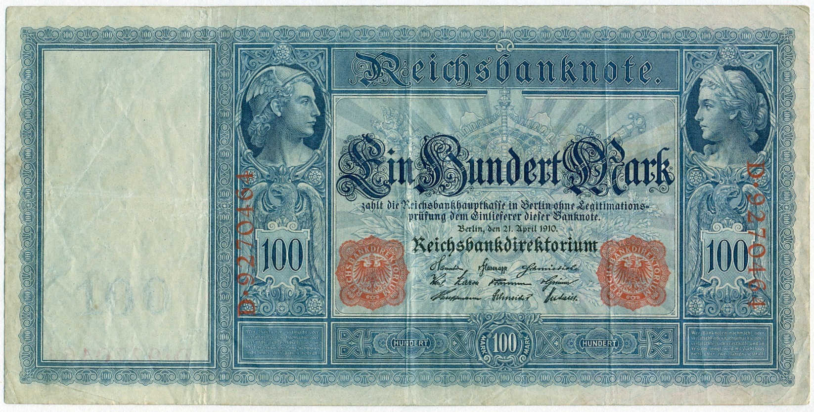 100 марок 1910 года Германия (Красные номера и печати)