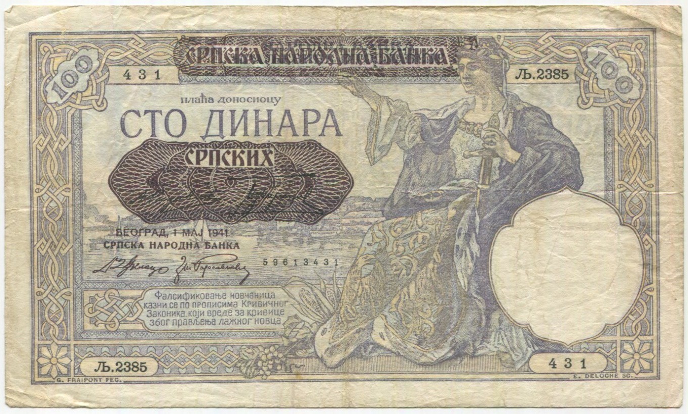 100 динаров 1941 года Сербия