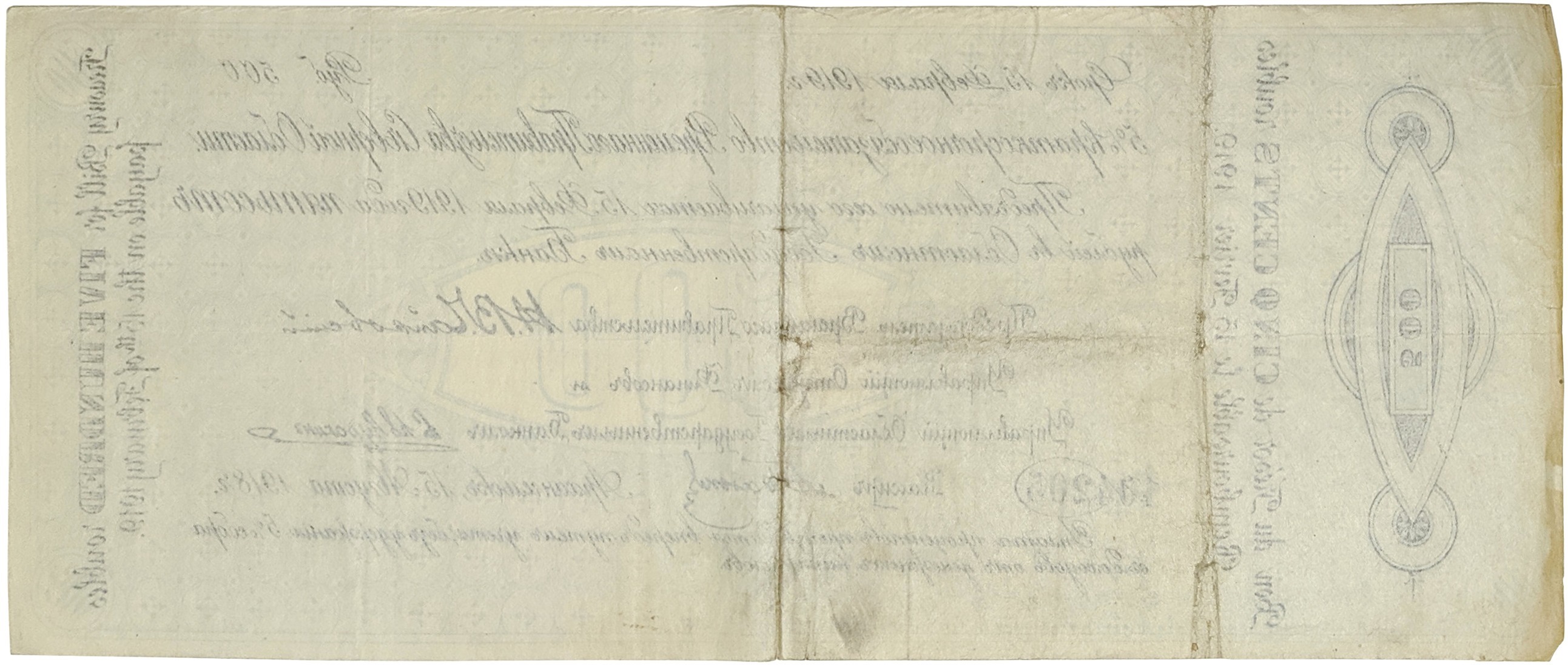 500 рублей 1918 года 5% краткосрочное обязательство Временного Правительства Северной области (Архангельск)