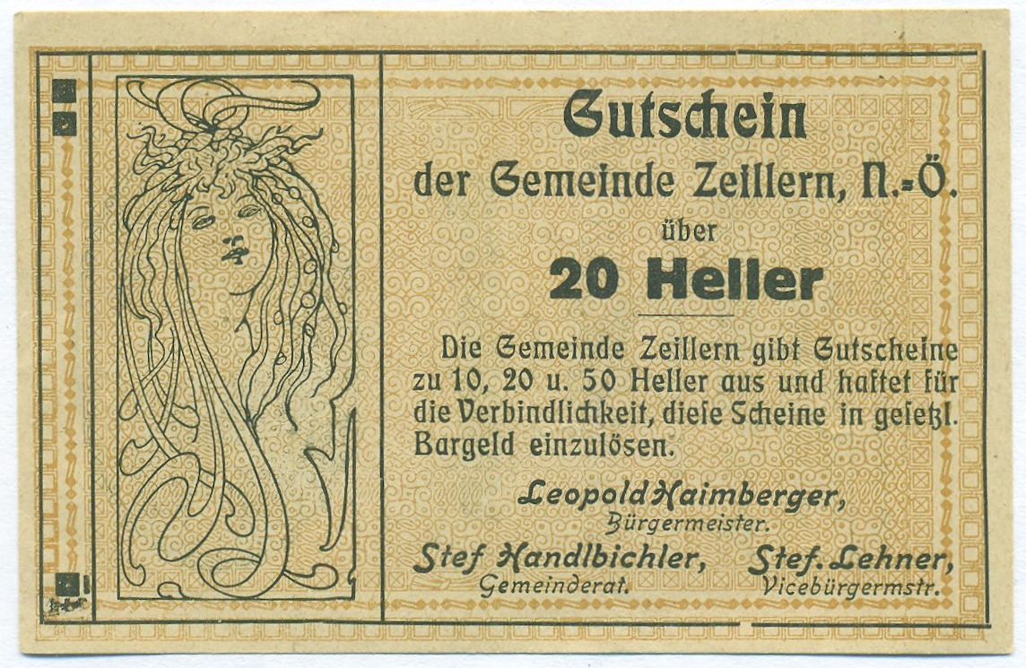 20 геллеров 1920 года Австрия — община Цайллерн (Нотгельд)