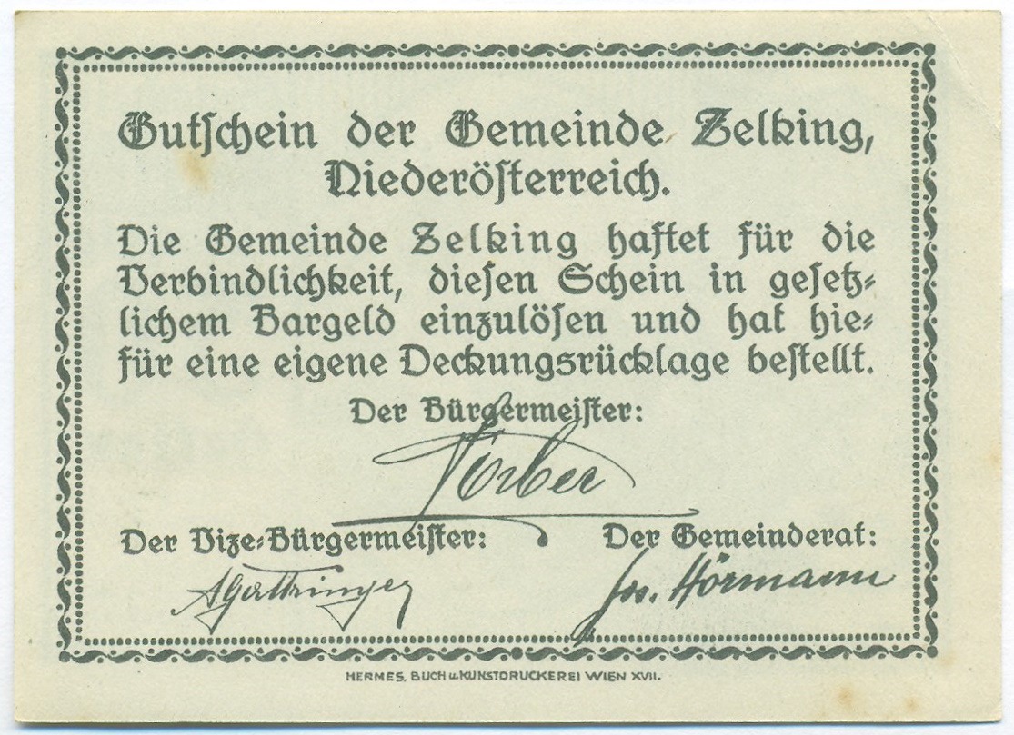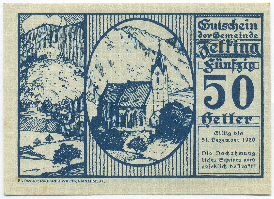 50 геллеров 1920 года Австрия — община Целькинг (Нотгельд)