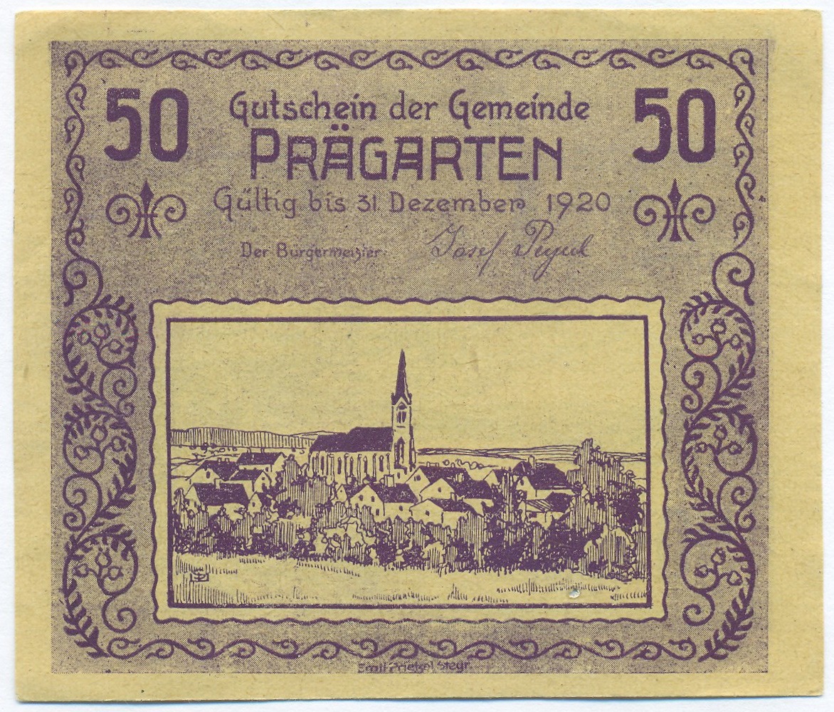 50 геллеров 1920 года Австрия — община Прегартен (Нотгельд)