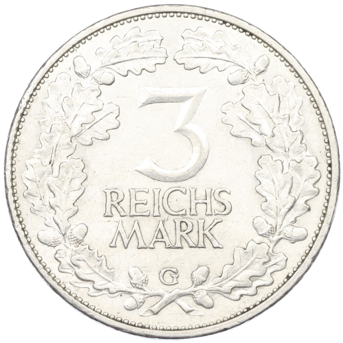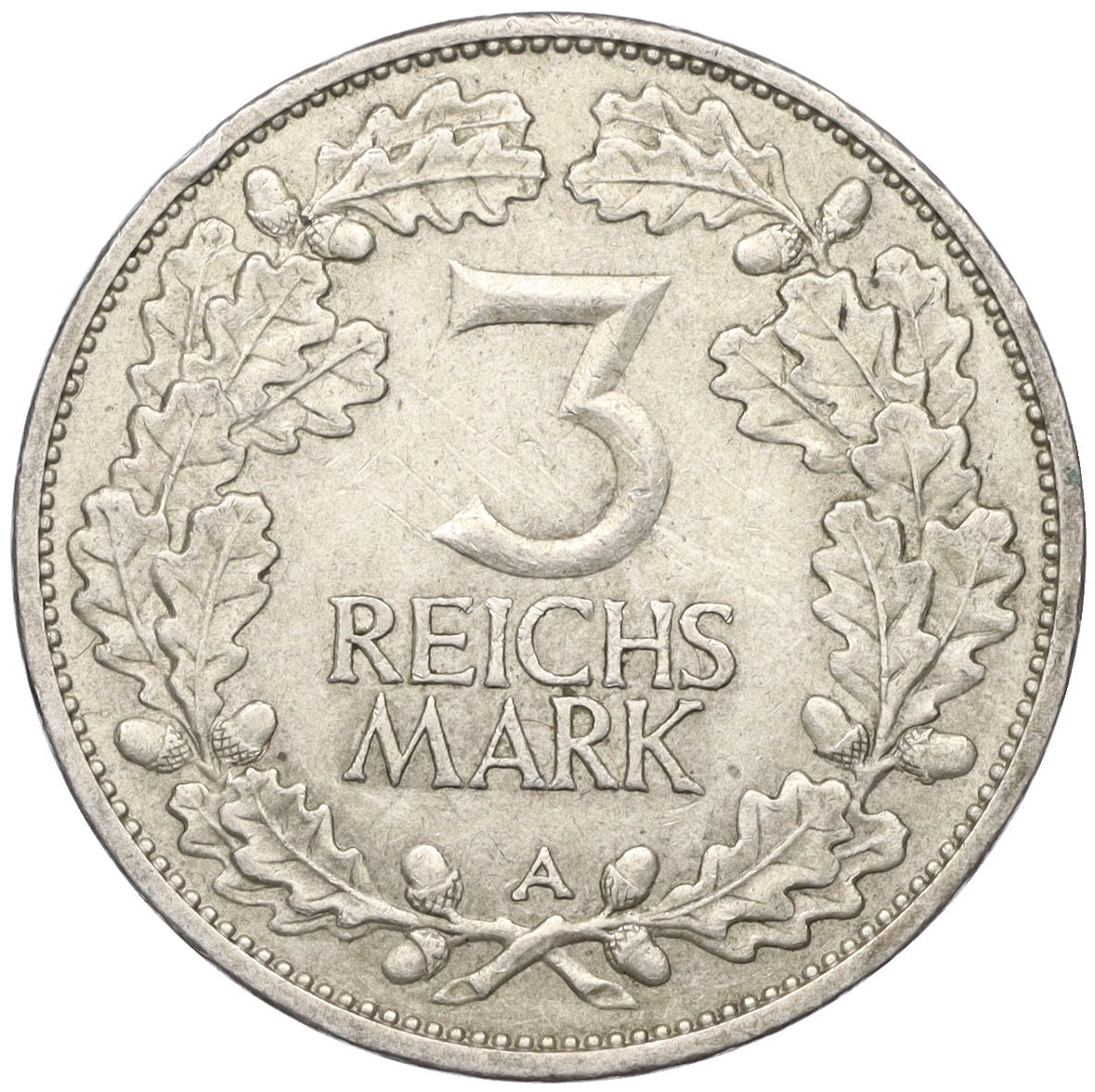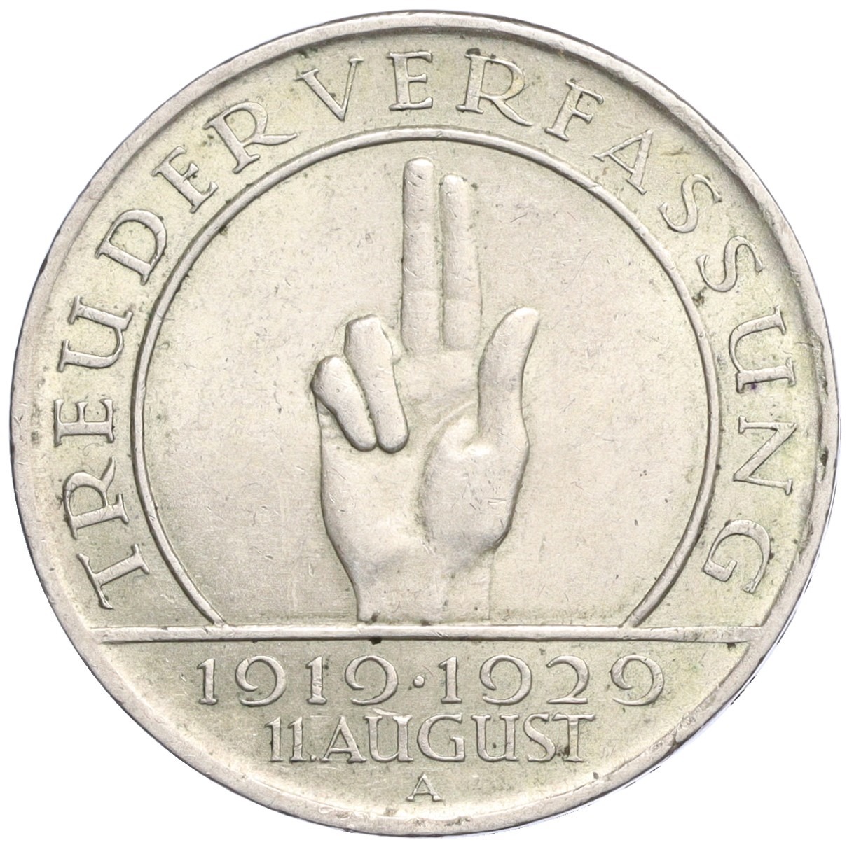 3 рейхсмарки 1929 года A Германия «10 лет Веймарской конституции»