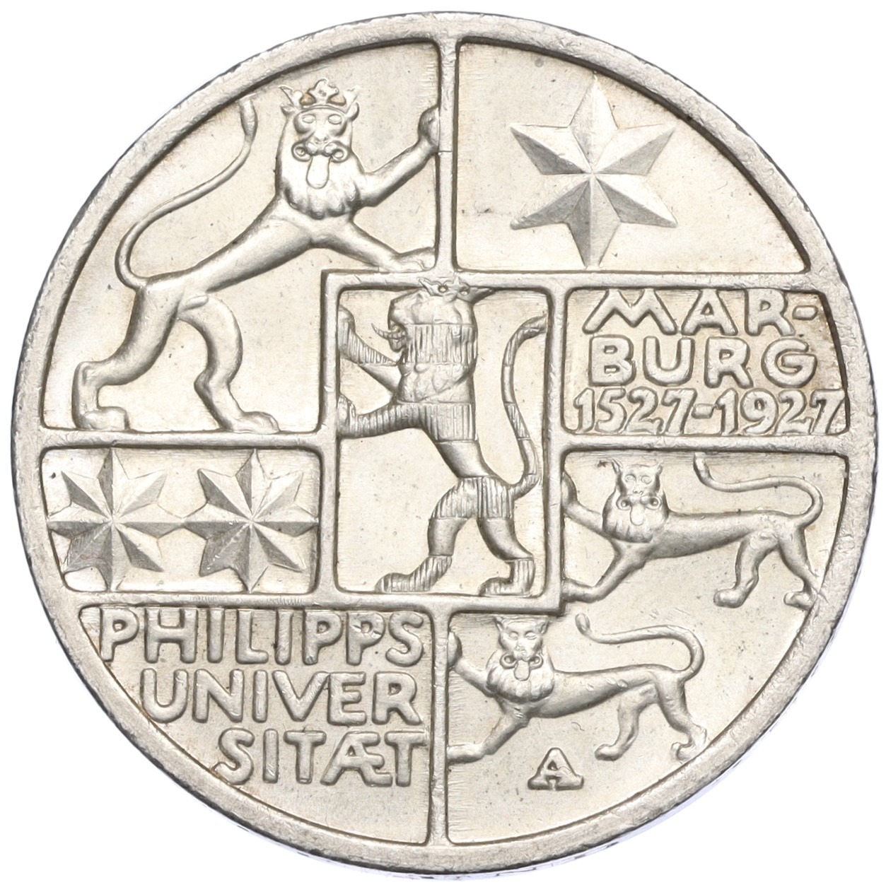 3 рейхсмарки 1927 года Германия «400 лет Марбургскому университету имени Филиппа»