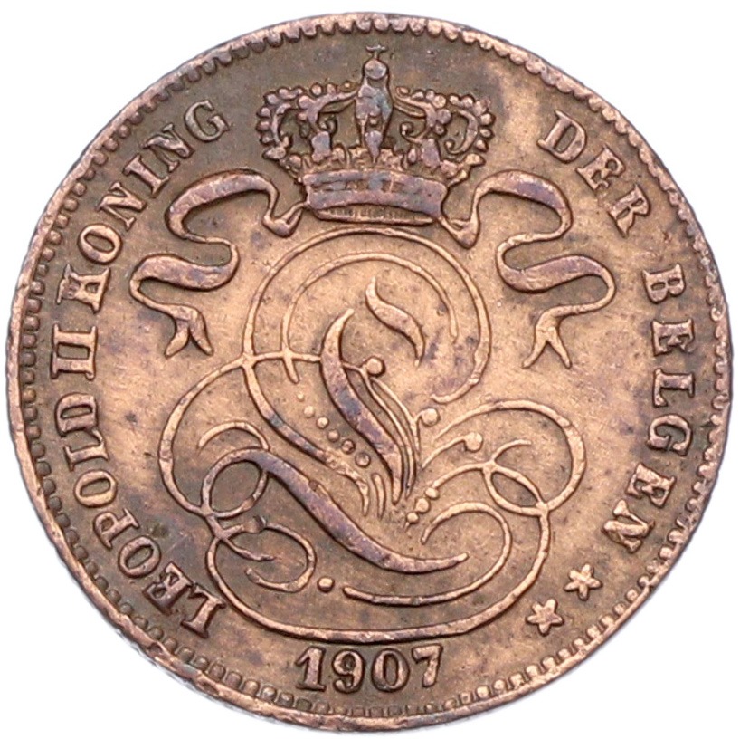 1 сантим 1907 года Бельгия — легенда на фламандском (DER BELGEN)