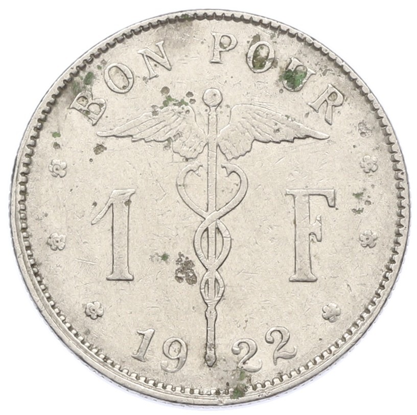 1 франк 1922 года Бельгия (Надпись на французском — BELGIQUE)