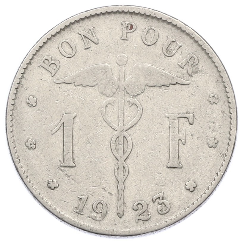 1 франк 1923 года Бельгия (Надпись на французском — BELGIQUE)