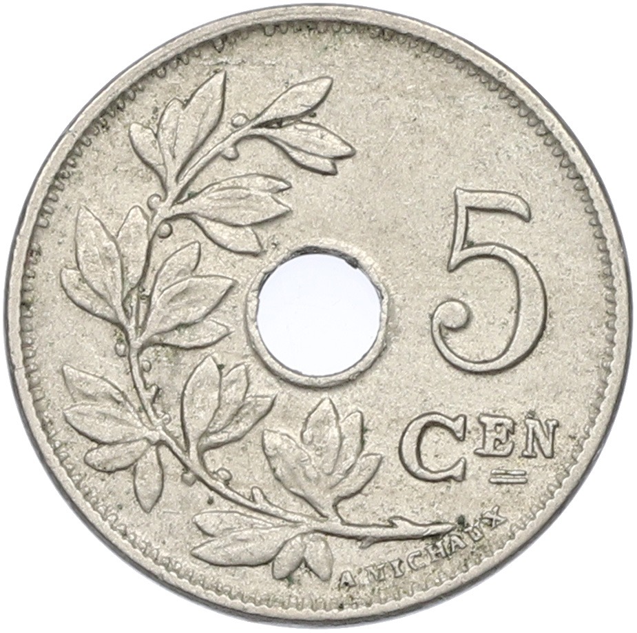 5 сантимов 1921 года Бельгия — Надпись на фламандском (BELGIE)