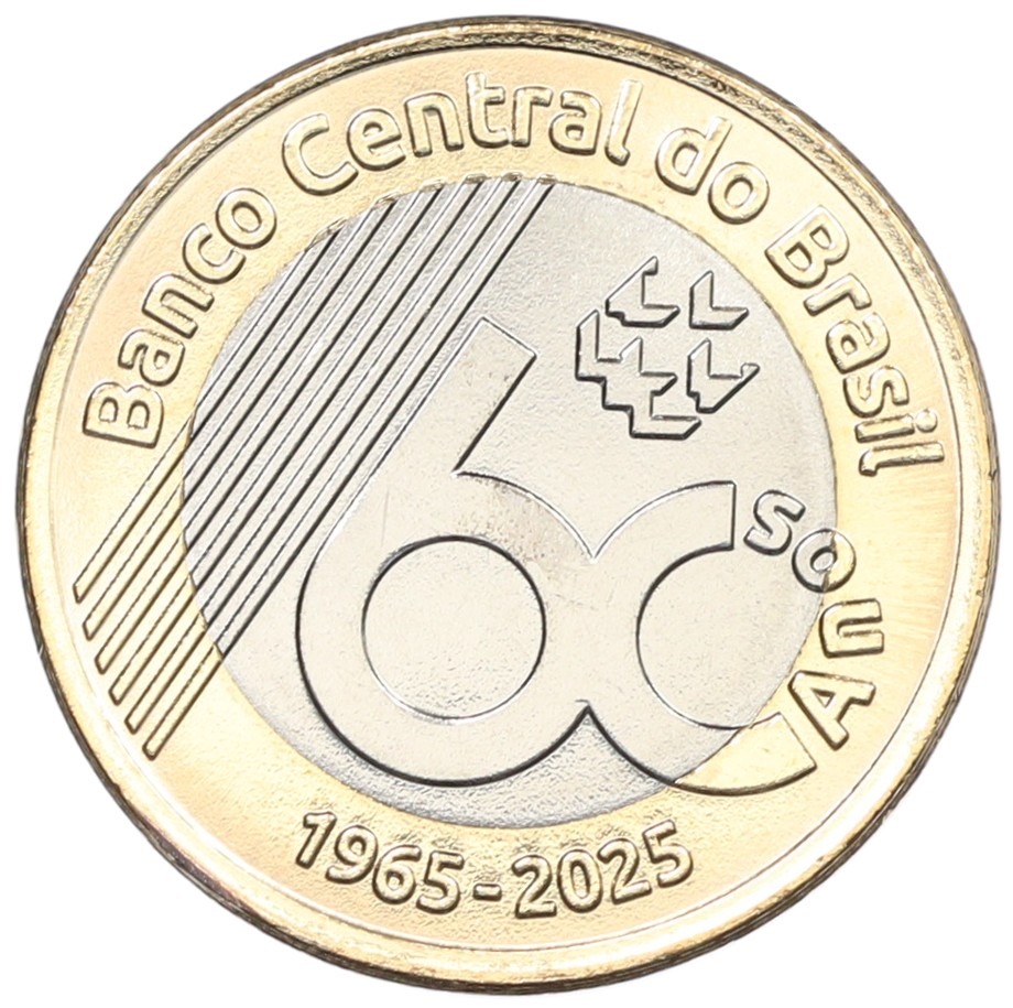 1 реал 2025 года Бразилия «60 лет Центральному банку»