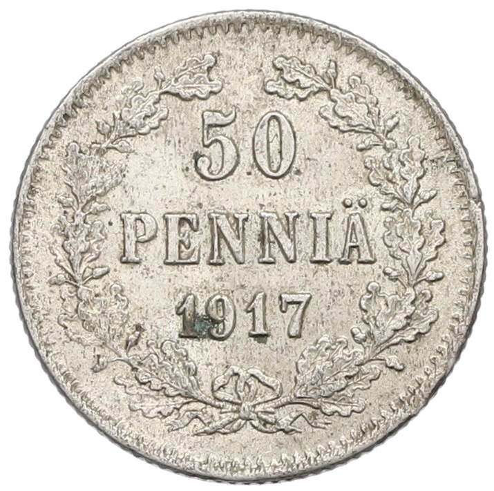50 пенни 1917 года Русская Финляндия (Орел с коронами)