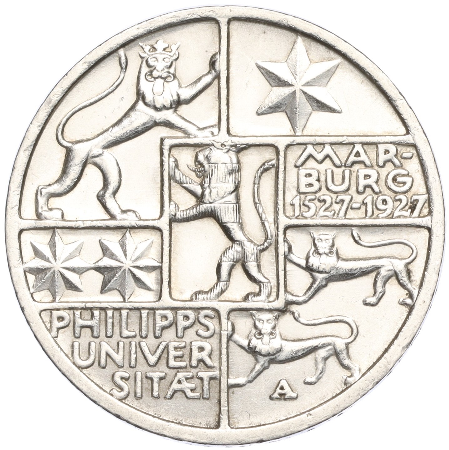 3 рейхсмарки 1927 года Германия «400 лет Марбургскому университету имени Филиппа»