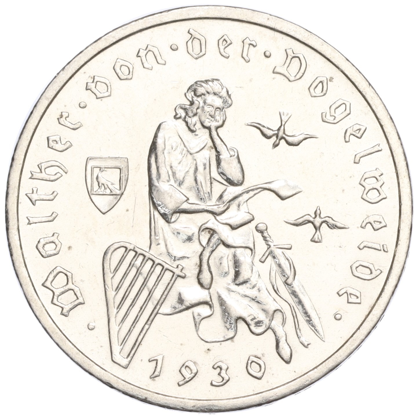 3 рейхсмарки 1930 года А Германия «700 лет со дня смерти Вальтера фон дер Фогельвейде»