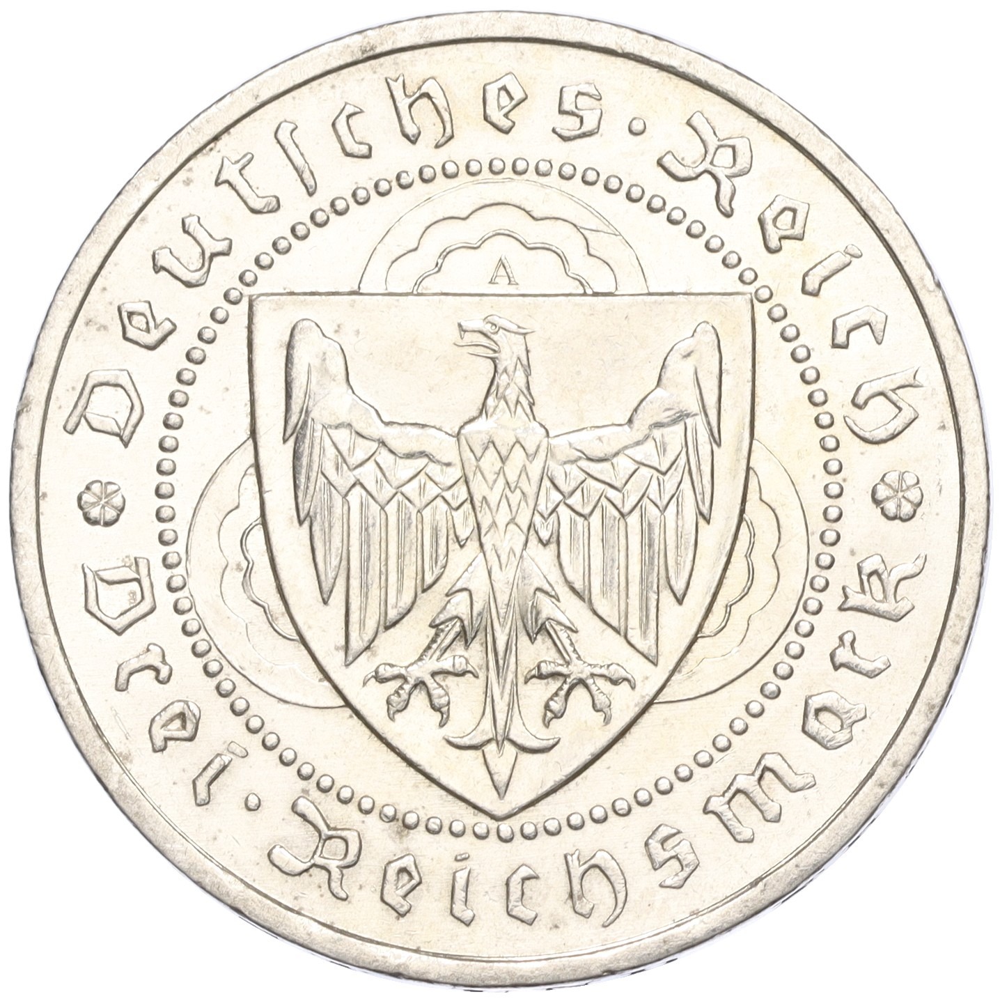 3 рейхсмарки 1929 года А Германия «Объединение Вальдека и Пруссии»