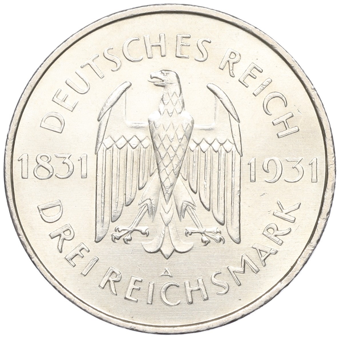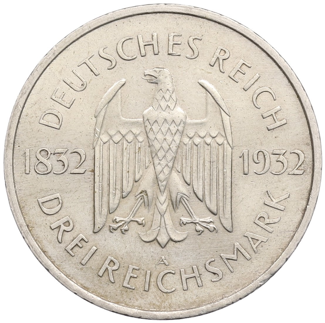3 рейхсмарки 1932 года A Германия «100 лет со дня смерти Гете»
