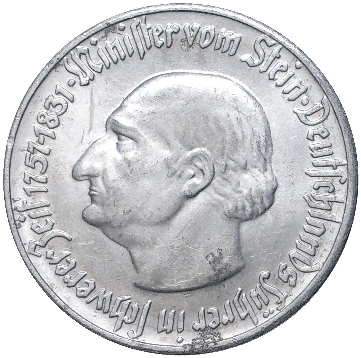 3 рейхсмарки 1931 года Германия «100 лет со дня смерти Генриха фом Штейна»