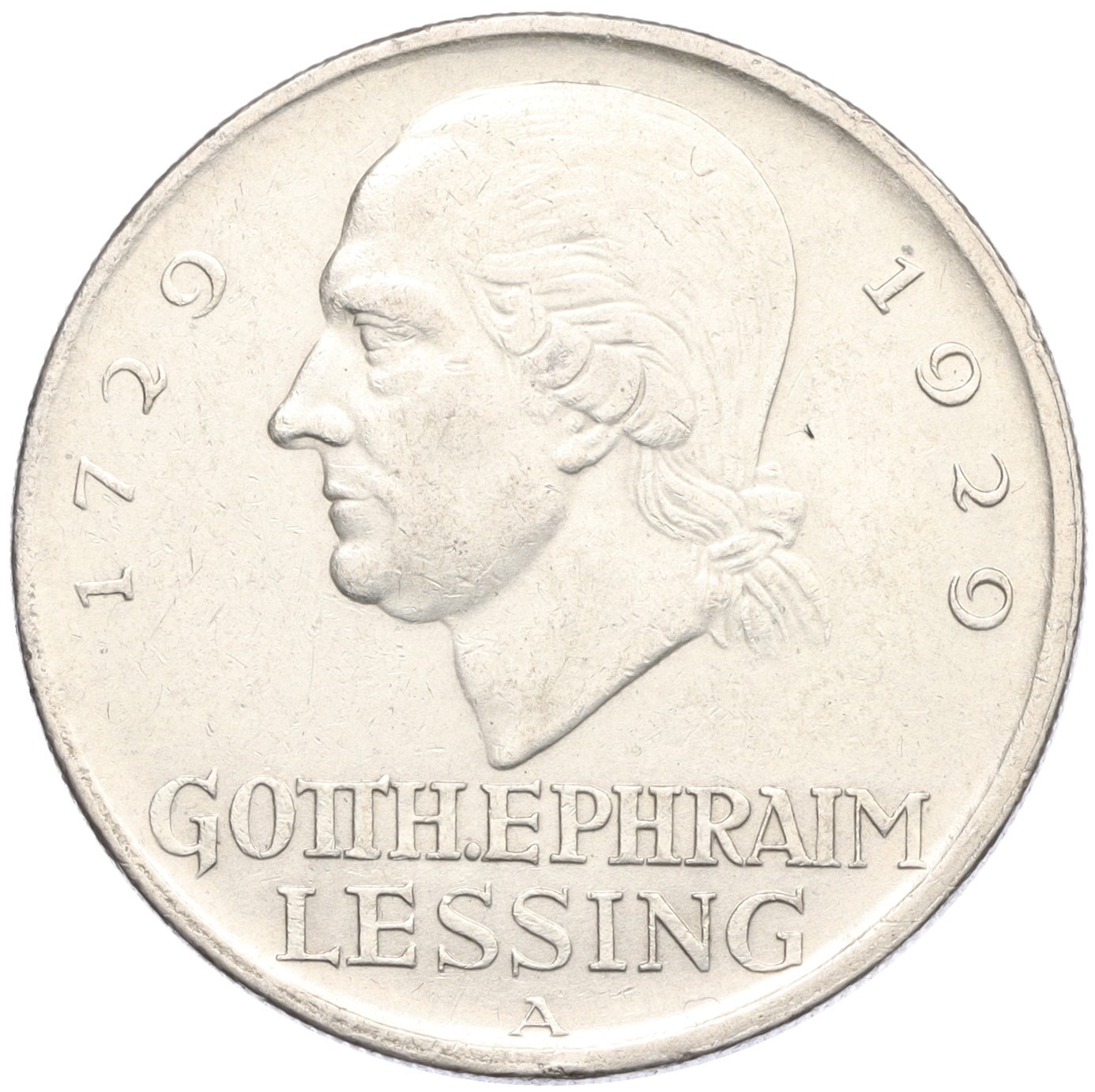 5 рейхсмарок 1929 года А Германия «200 лет со дня рождения Готхольда Лессинга»
