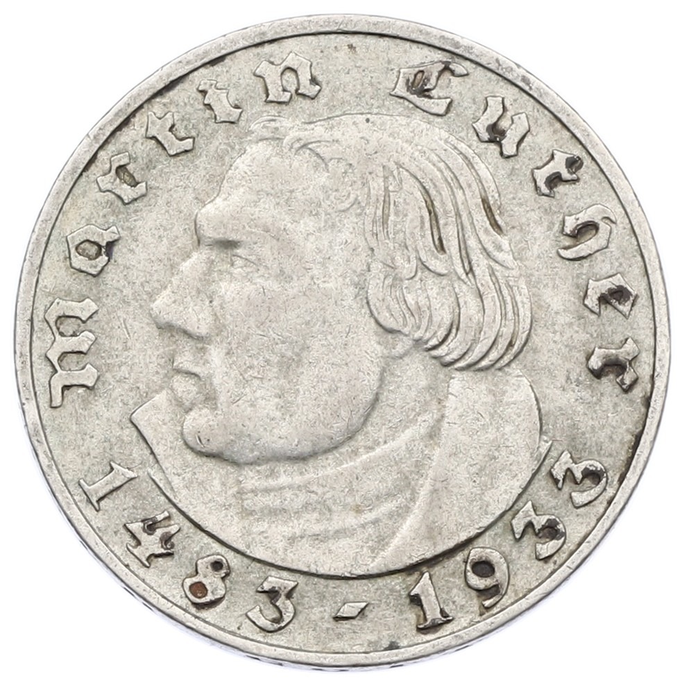 5 рейхсмарок 1933 года A Германия «450 лет со дня рождения Мартина Лютера»