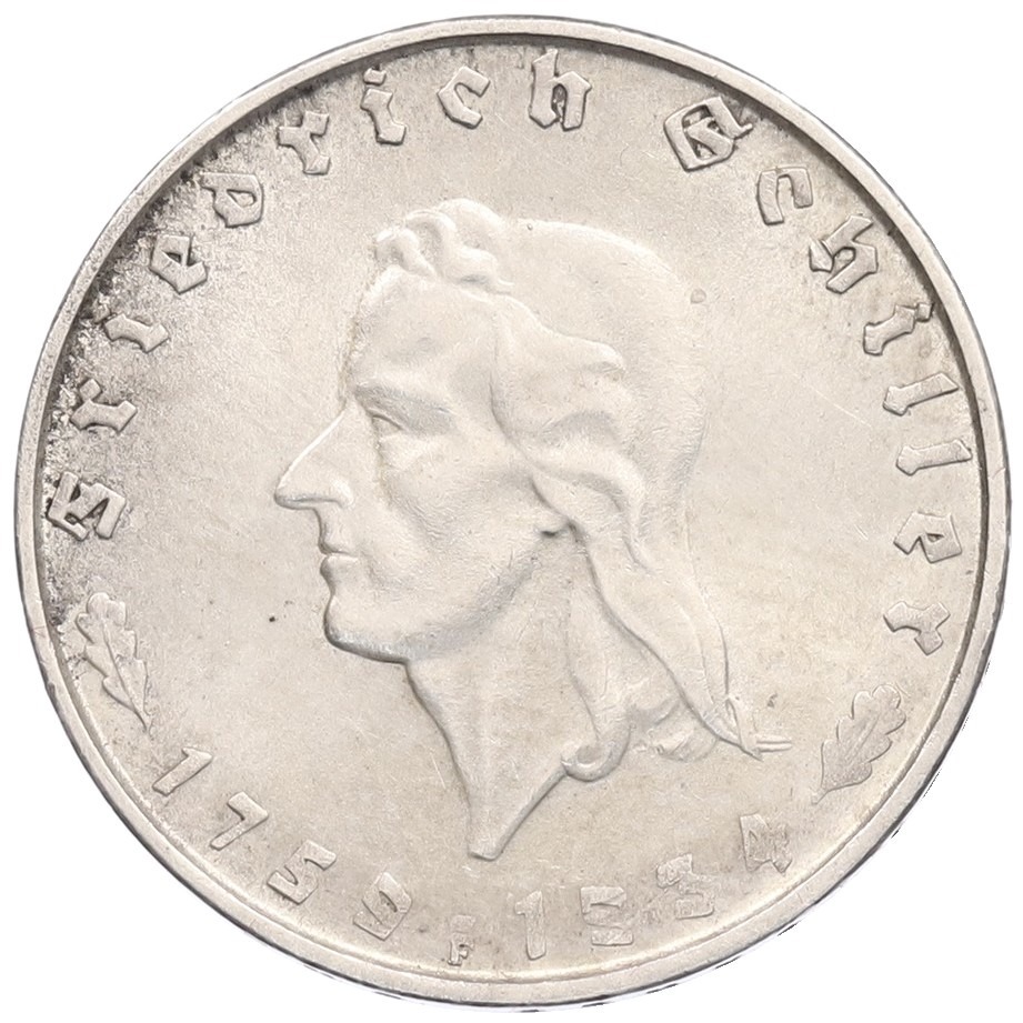 2 рейхсмарки 1934 года F Германия «175 лет со дня рождения Фридриха Шиллера»