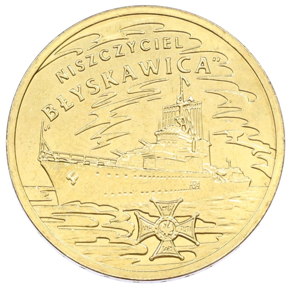 2 злотых 2012 года Польша «Польские суда — Эсминец Молния»