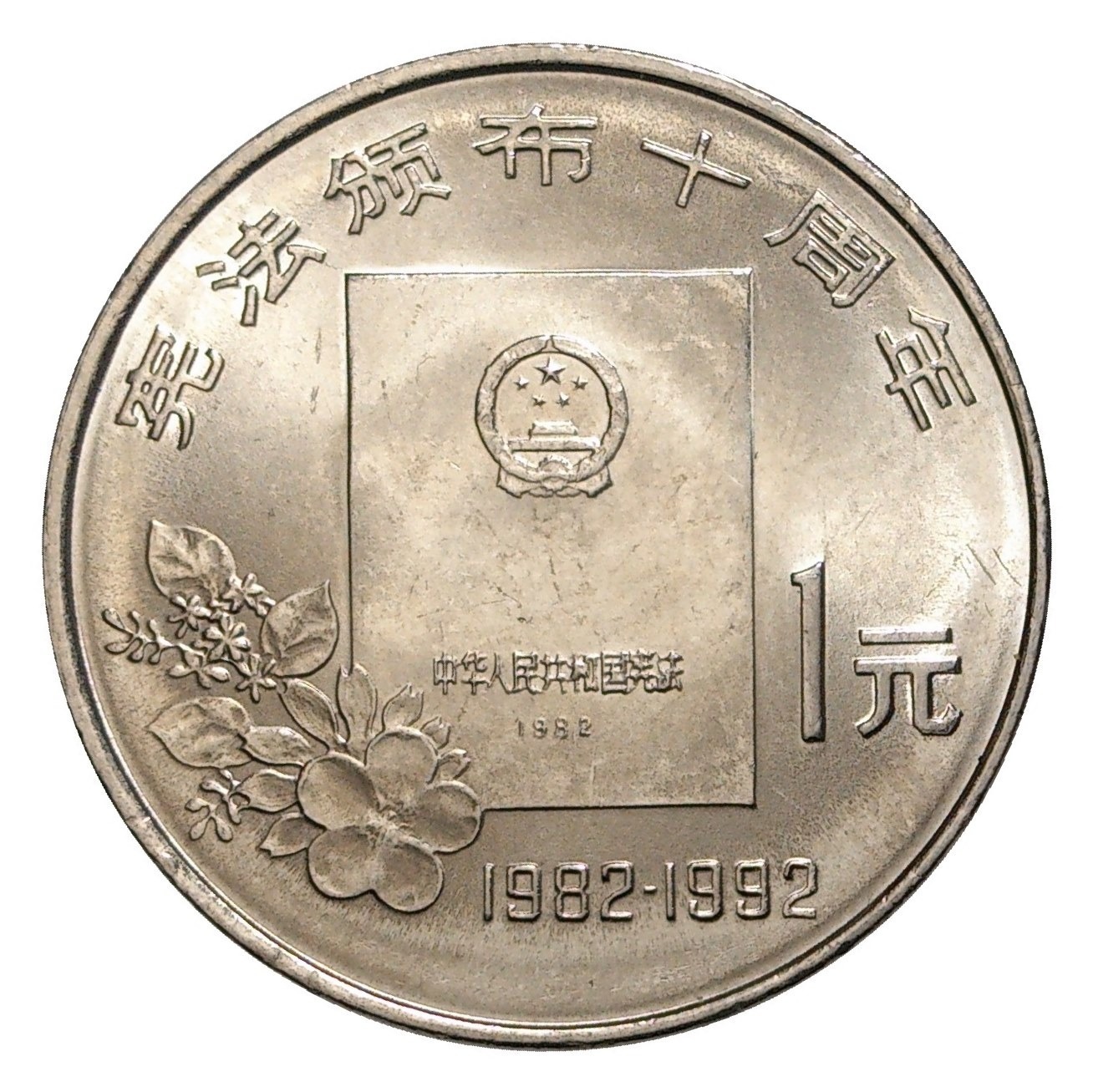 1 юань 1992 года Китай — 10 лет Конституции
