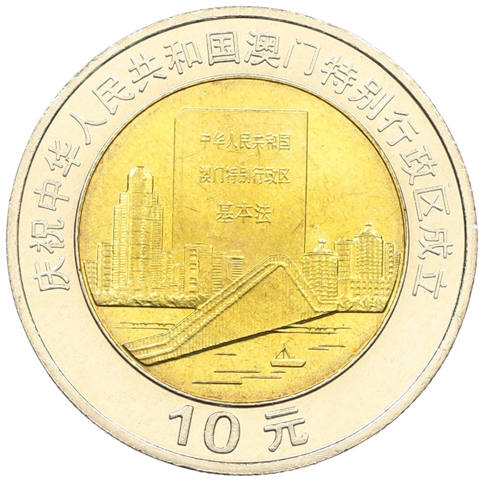 10 юаней 1999 года Китай «Возврат Макао под юрисдикцию Китая — Город и документ»