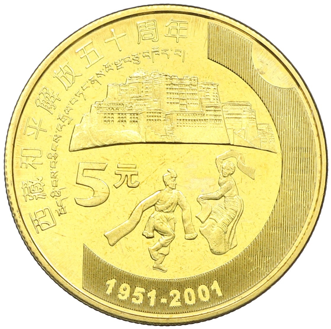 5 юаней 2001 года Китай «50 лет присоединению Тибета к Китаю»