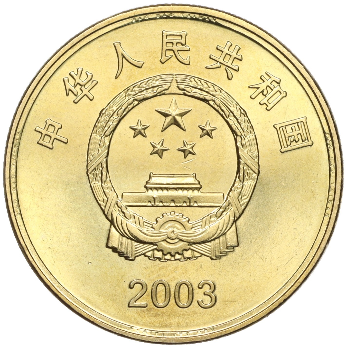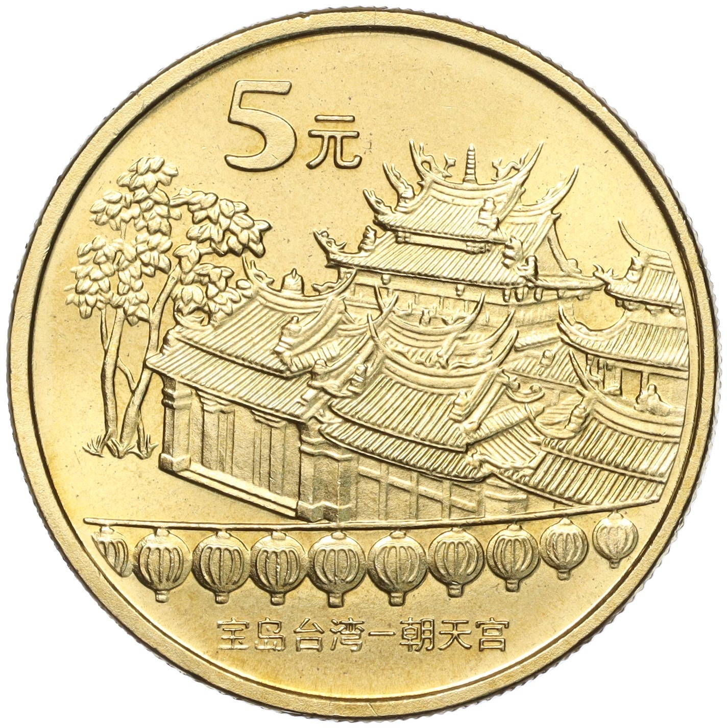 5 юаней 2003 года Китай «Достопримечательности Китая — Храм Чаотянь в Тайваньском Бэйгане»
