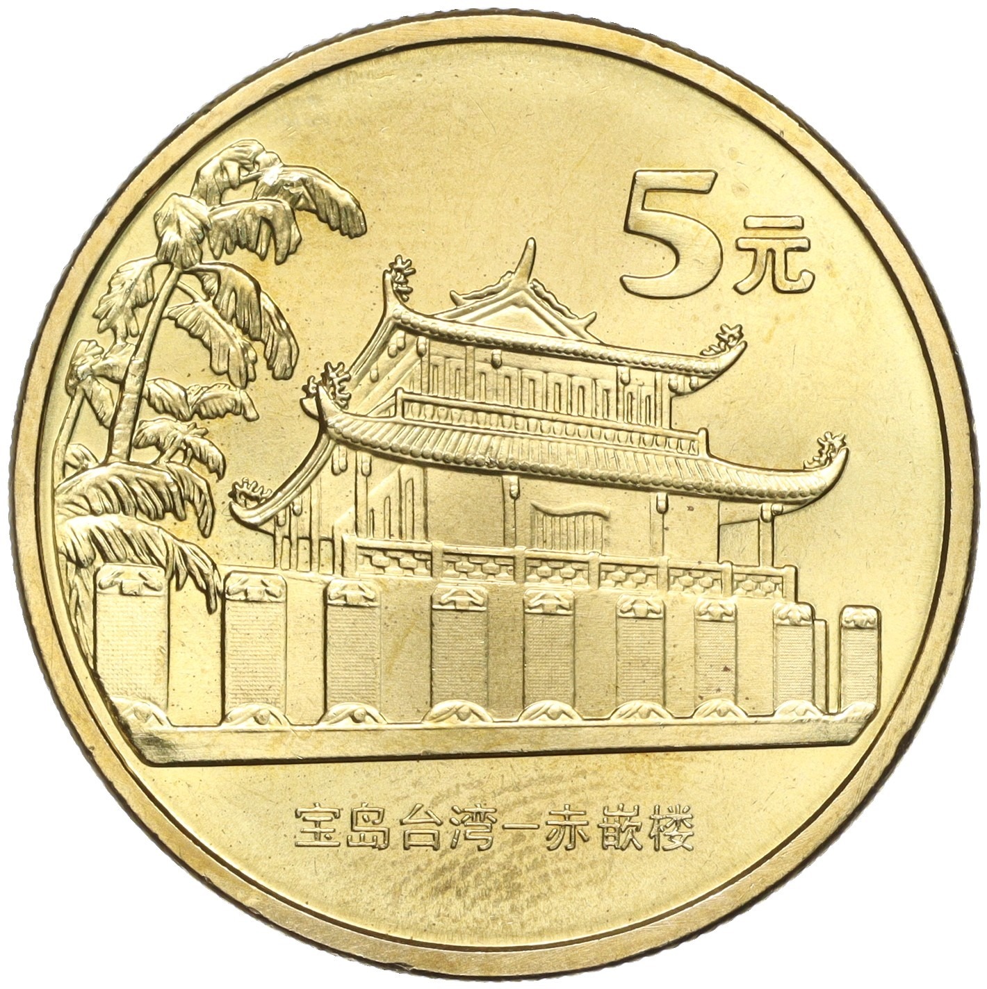 5 юаней 2003 года Китай «Достопримечательности Тайваня — Башня Чикан»