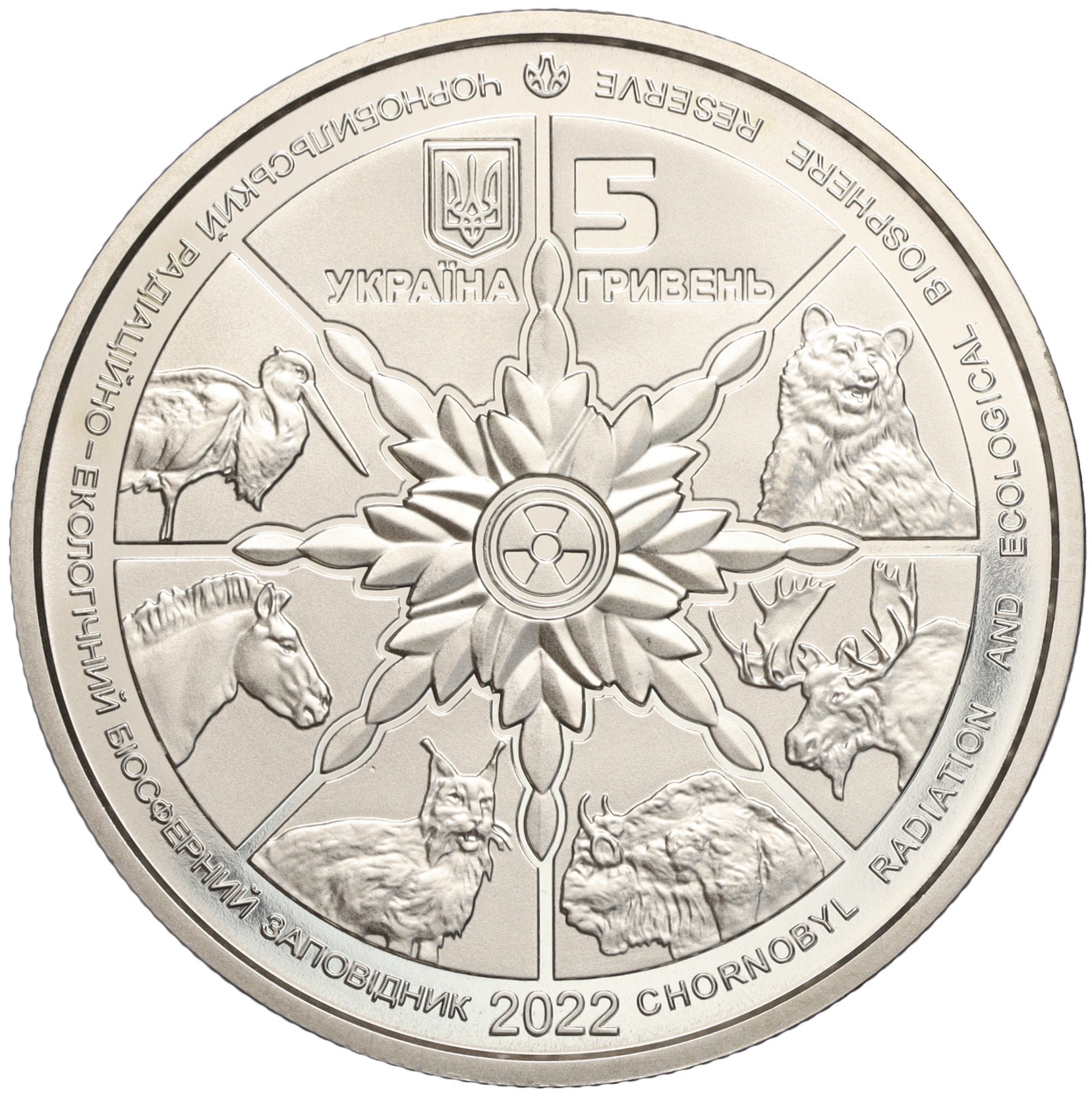 5 гривен 2022 года Украина «Чернобыльский радиационно-экологический биосферный заповедник — Бурый медведь»