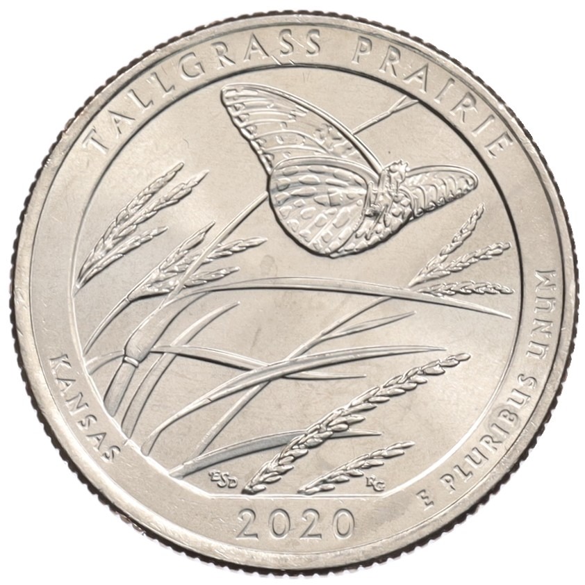 1/4 доллара (25 центов) 2020 года P США «Национальные парки — №55 Национальный заповедник Таллграсс Прейри»