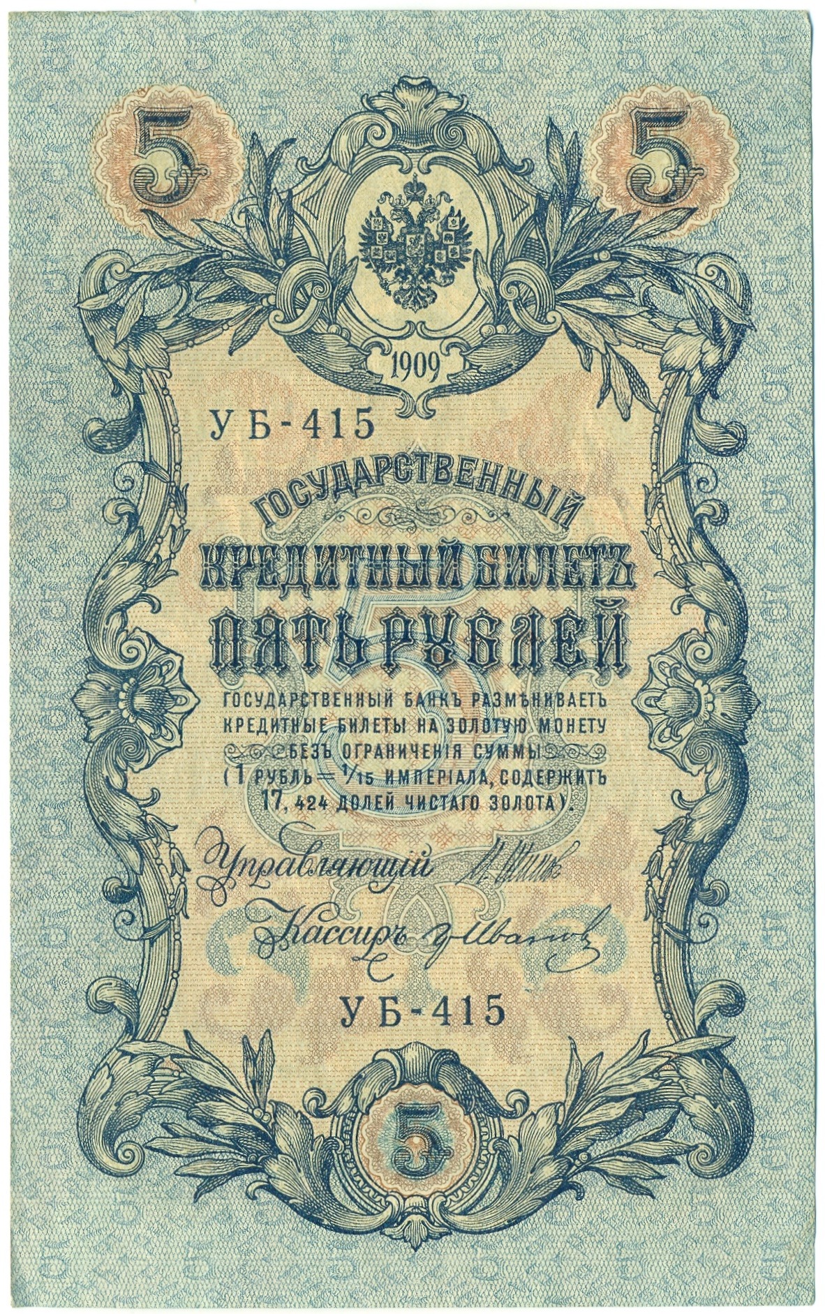 5 рублей 1909 года Шипов / Бубякин