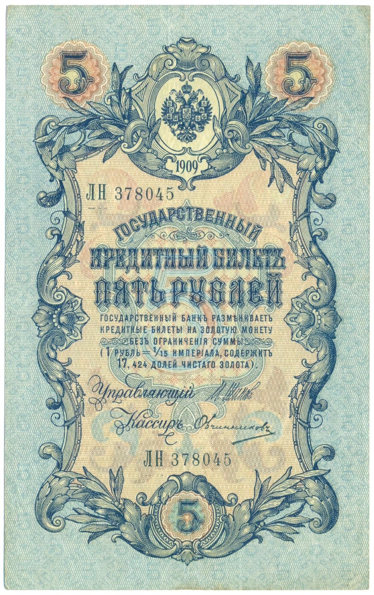 5 рублей 1909 года Шипов / Былинский