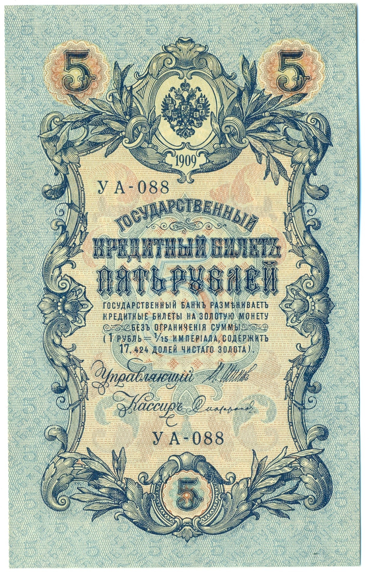 5 рублей 1909 года Шипов / Гусев