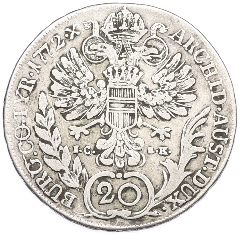 20 крейцеров 1772 года Австрия (Мария Терезия — Орел со щитом Австрии)